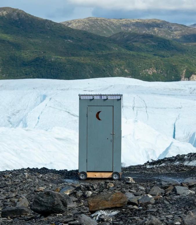 Our camp has a shared “outhouse” but one like you’ve never seen before with a high-tech toilet like you would find in tiny houses and RVs. Like this one: